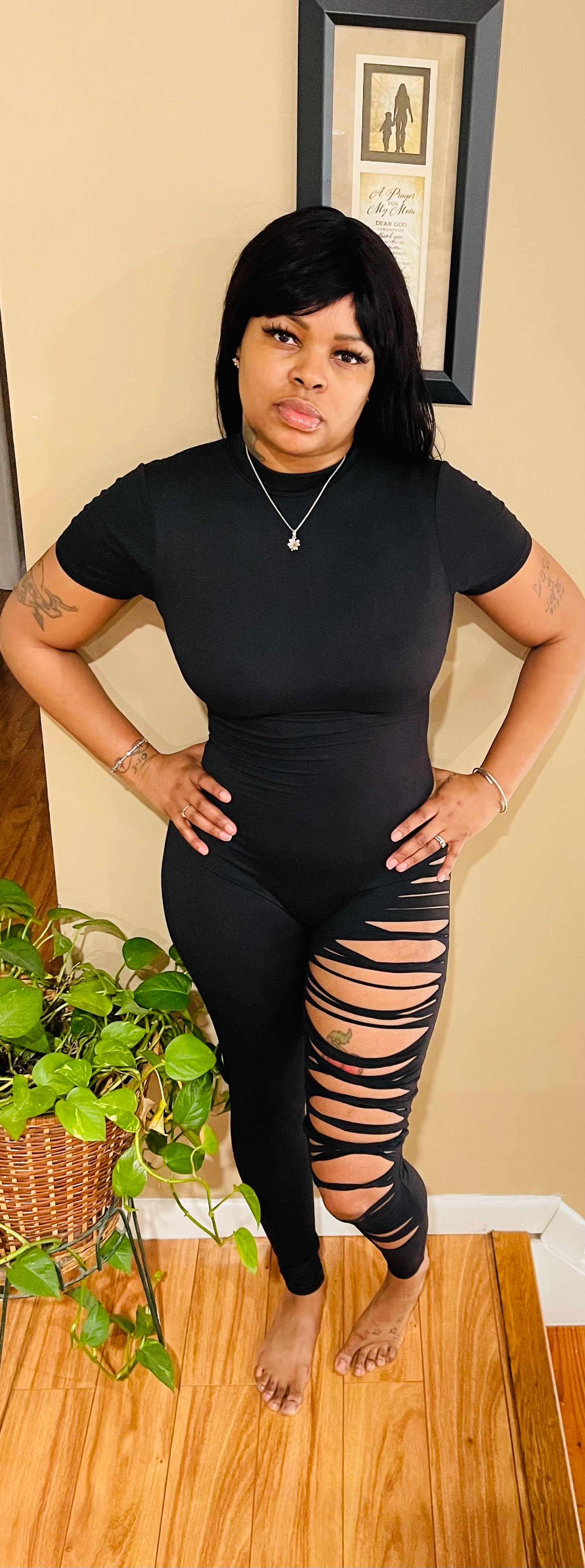 One piece w/ cut of leg