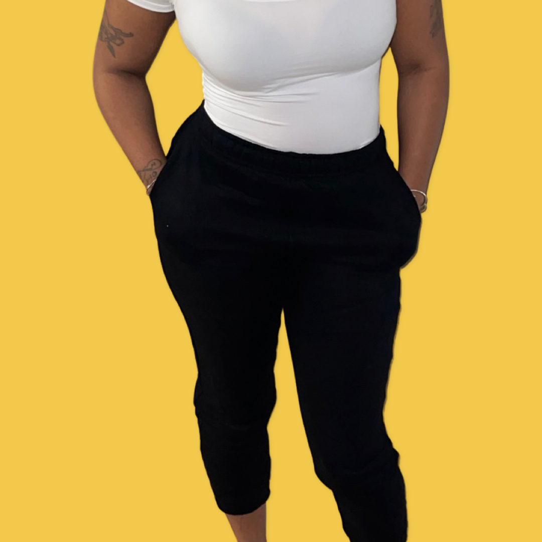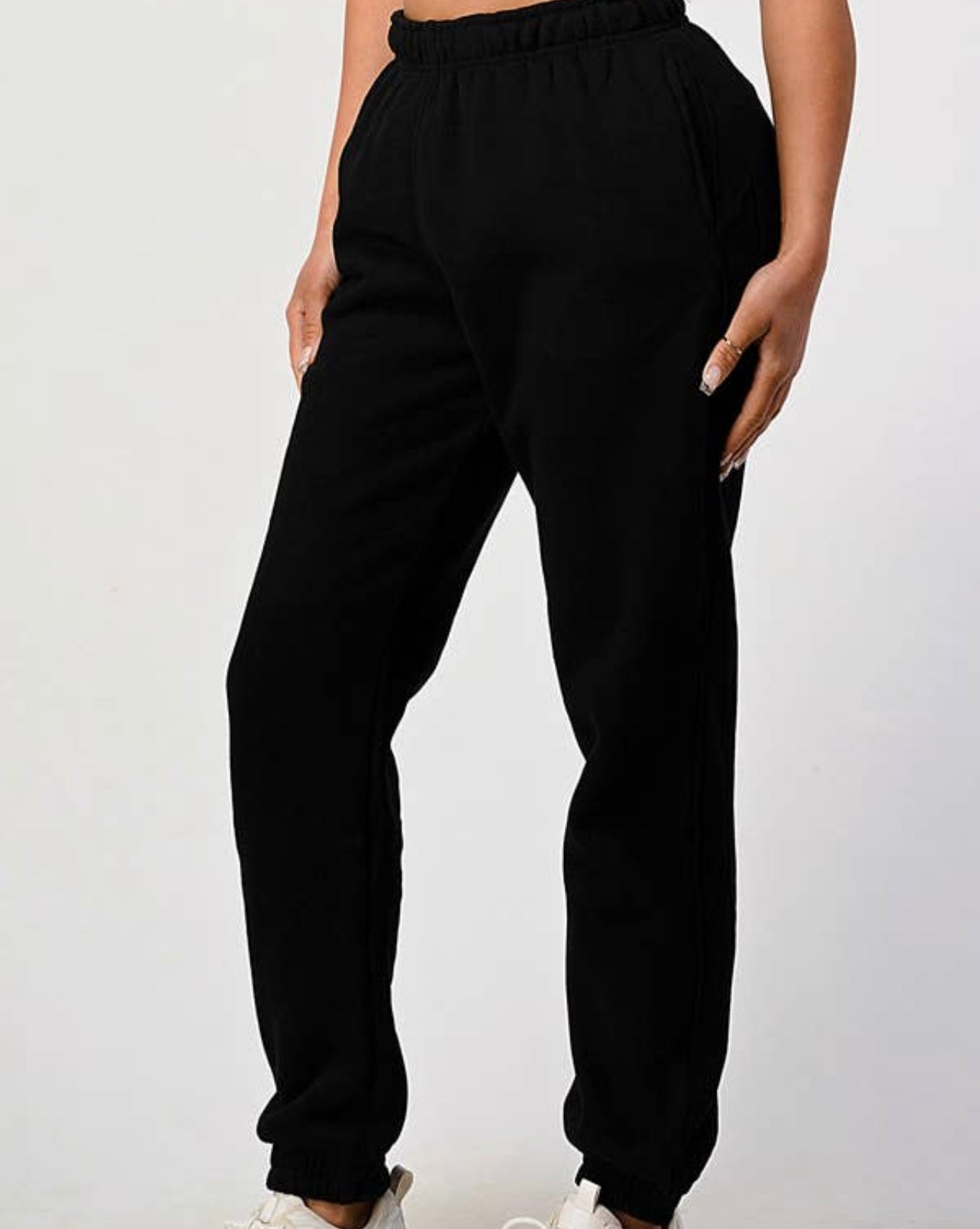 Oversized solid pocket sweat joggers pants with piping in side and back waist.
