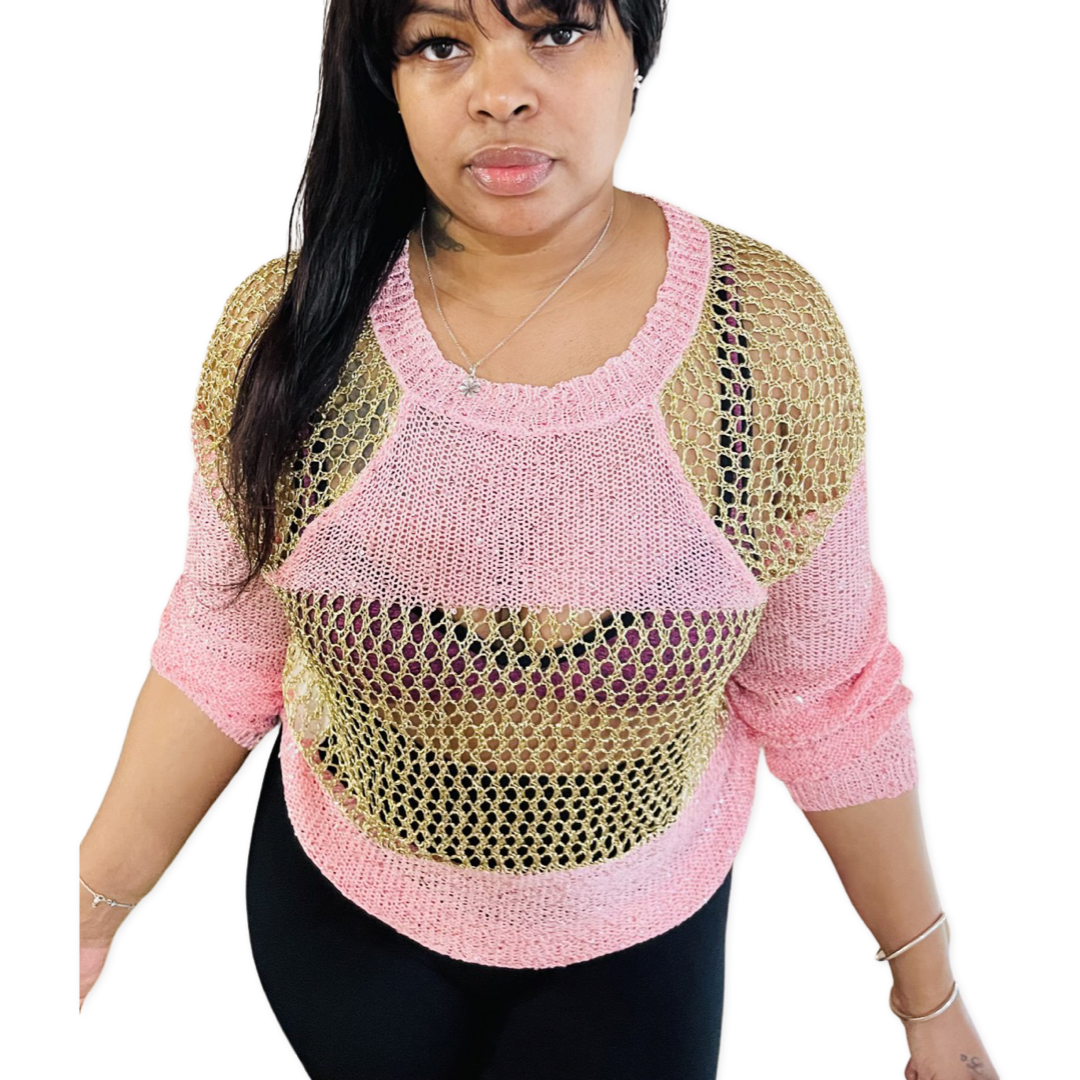 Pink Sequin gold knitted sweater